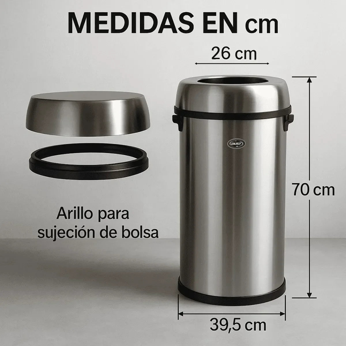 Con una generosa capacidad de 65 litros, este bote ofrece una solución efectiva para la recolección de desechos en áreas con un flujo constante de residuos. Su tamaño es ideal para lugares como oficinas, parques, plazas, y entornos comerciales, donde se requiere un contenedor de mayor capacidad sin comprometer la eficiencia.